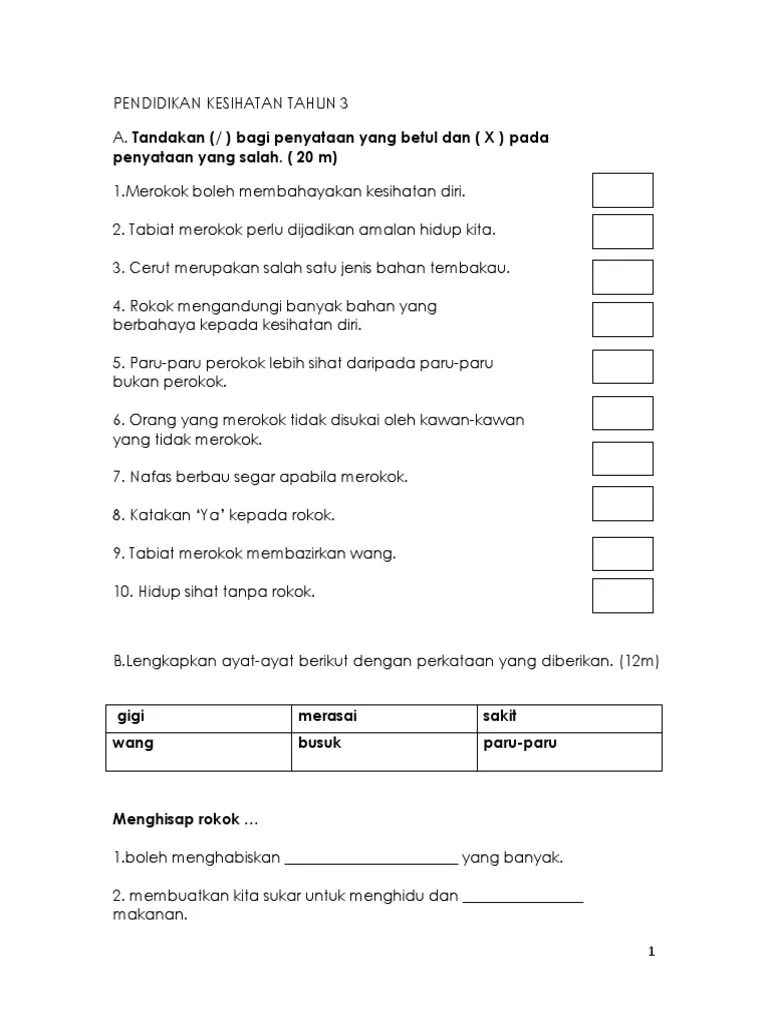 Kesihatan fizikal lembaran kerja 1. 1 soalan objektif (20 markah) a. Berikut merupakan koleksi soalan peperiksaan pk . Lembaran kerja pendidikan kesihatan tahun 6.